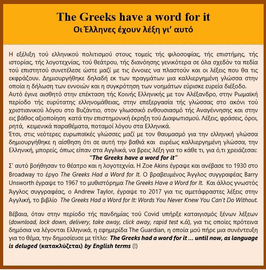 “The Greeks have a word for it” Οι Έλληνες έχουν λέξη γι’ αυτό.